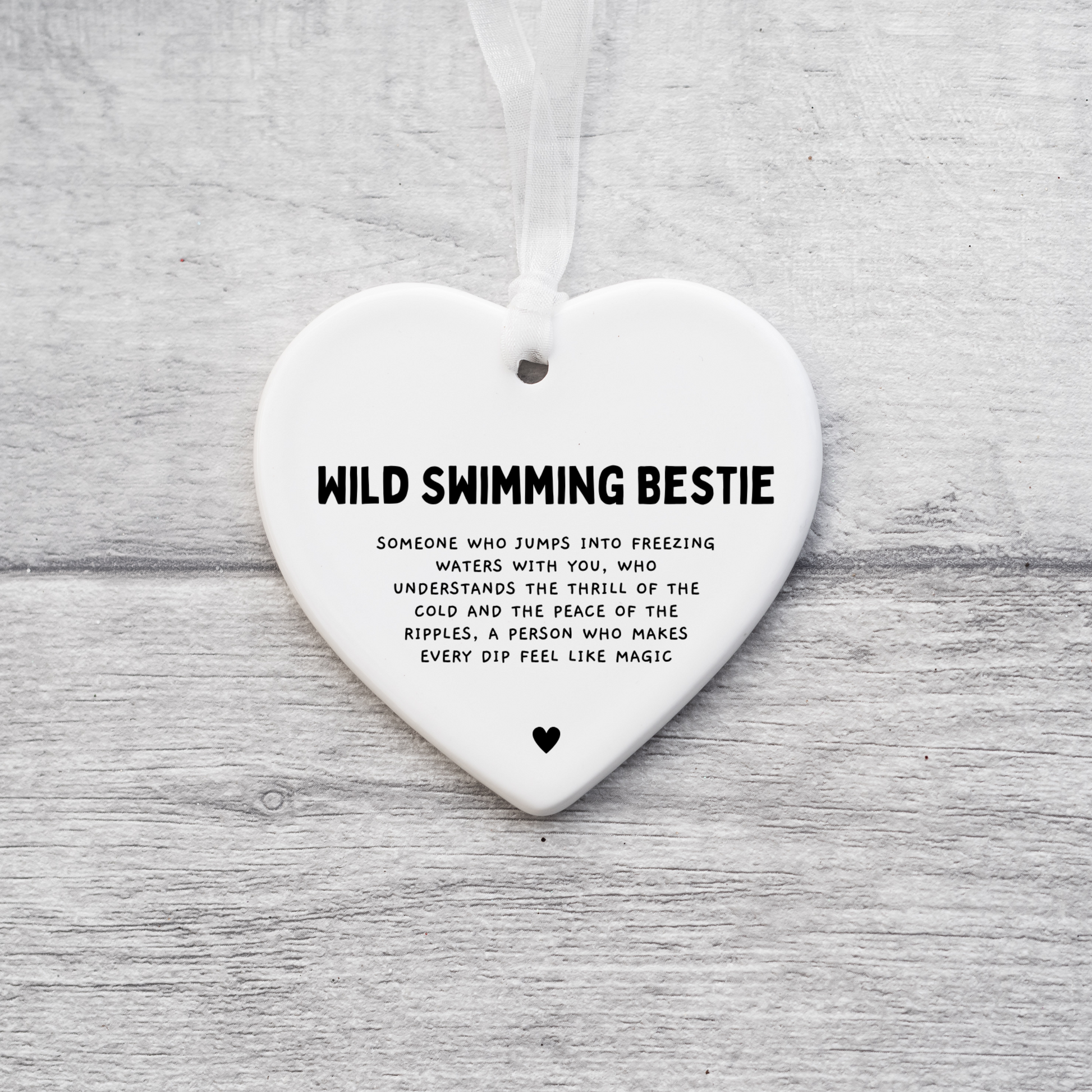 Celebrate the joy of friendship and the love of open-water adventures with this Wild Swimming Bestie Definition Gift. Perfect as a thoughtful keepsake, this ceramic heart makes a unique present for any wild swimming enthusiast.